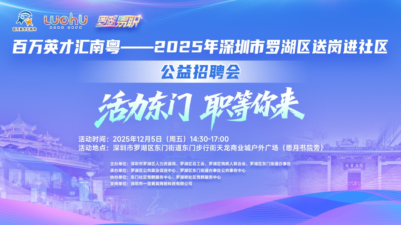 百萬(wàn)英才匯南粵——2025年深圳市羅湖區(qū)送崗進(jìn)社區(qū)公益招聘會(huì) 活力東門(mén),職等你來(lái)